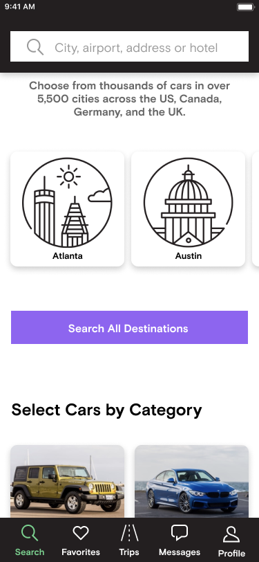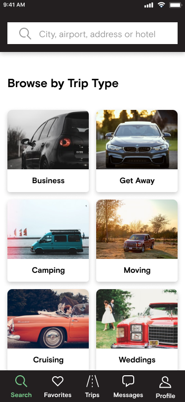 After designing my initial concept, I tested it to see if I had indeed designed an experience that helped users find a vehicle to help them move. I did this by pitting the current Turo home screen against my newly designed home screen.